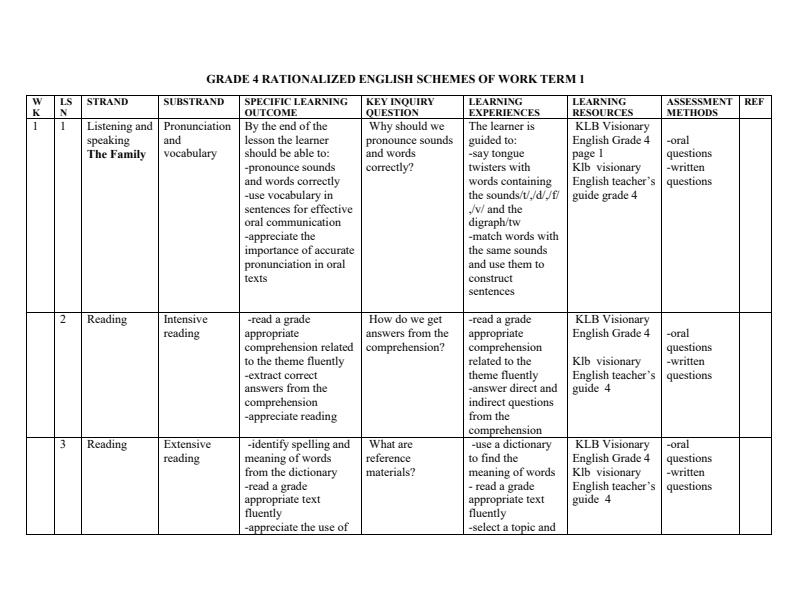 • Page 2 โ€“ Grade 4 Rationalized English Schemes of Work Term 1 - KLB Visionary โ€“ Kenyaplex