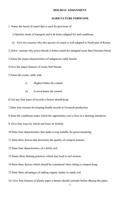 Download Form 1 Agriculture April Holiday Assignment 2023.
