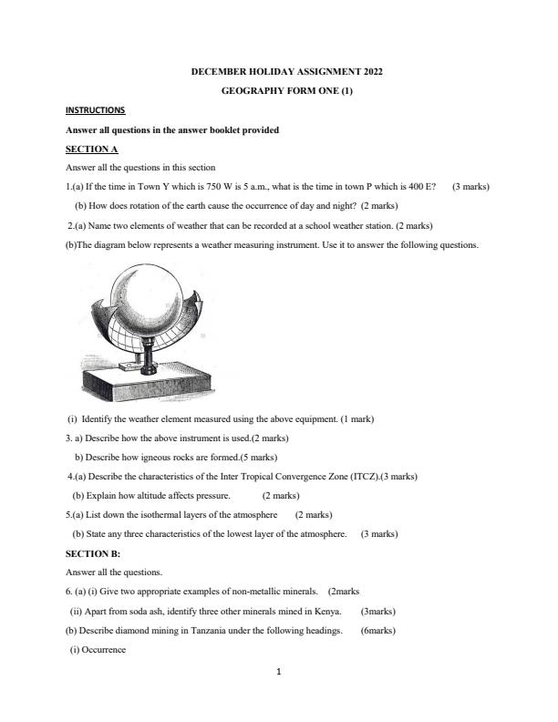 Prepare for your Form 1 Geography December 2024 holiday assignment with our comprehensive resources. Gear up for a successful undertaking with our expert guidance tailored for students.