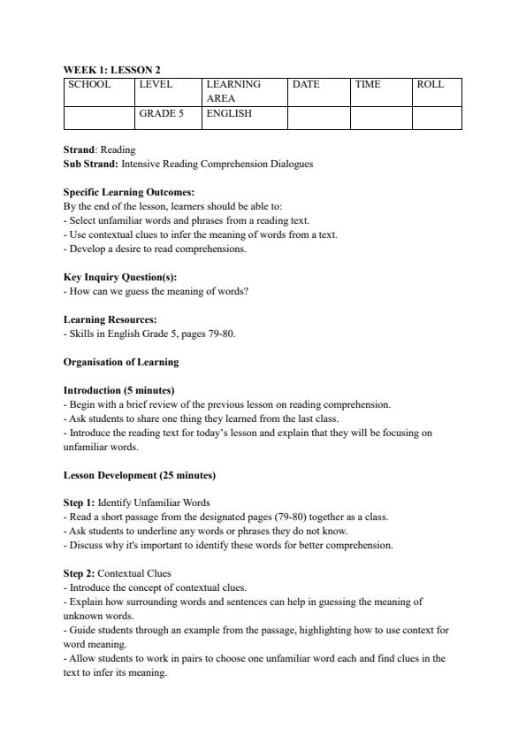 • Page 1 – Grade 5 Rationalized English Lesson Plans Term 2 – Kenyaplex