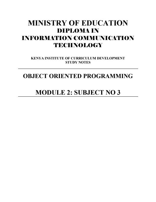 • Page 1 – Diploma in ICT: Object Oriented Programming Notes – Kenyaplex