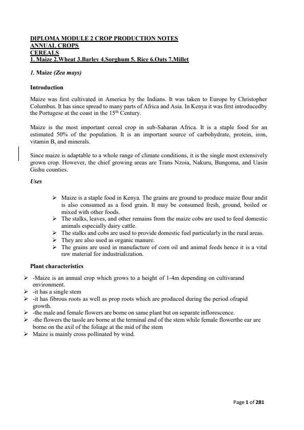 • Page 1 – Crop Production Notes for Diploma in General Agriculture Module 2 – Kenyaplex
