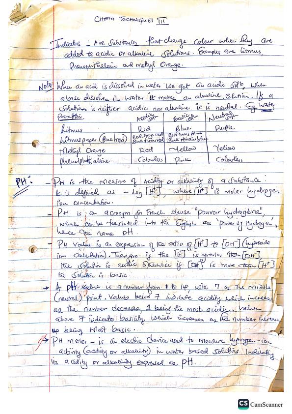 • Page 2 – CSL 201: Chemistry Techniques on PH and POH measurements, calculations, Ionization constants of weak acids and weak bases – Kenyaplex