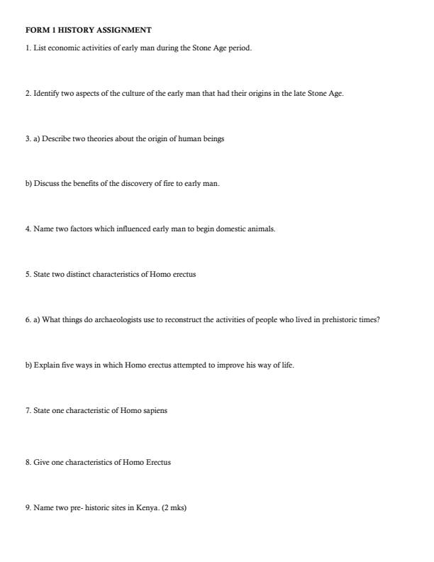 Download Form 1 History and Government December Holiday Assignment 2022.