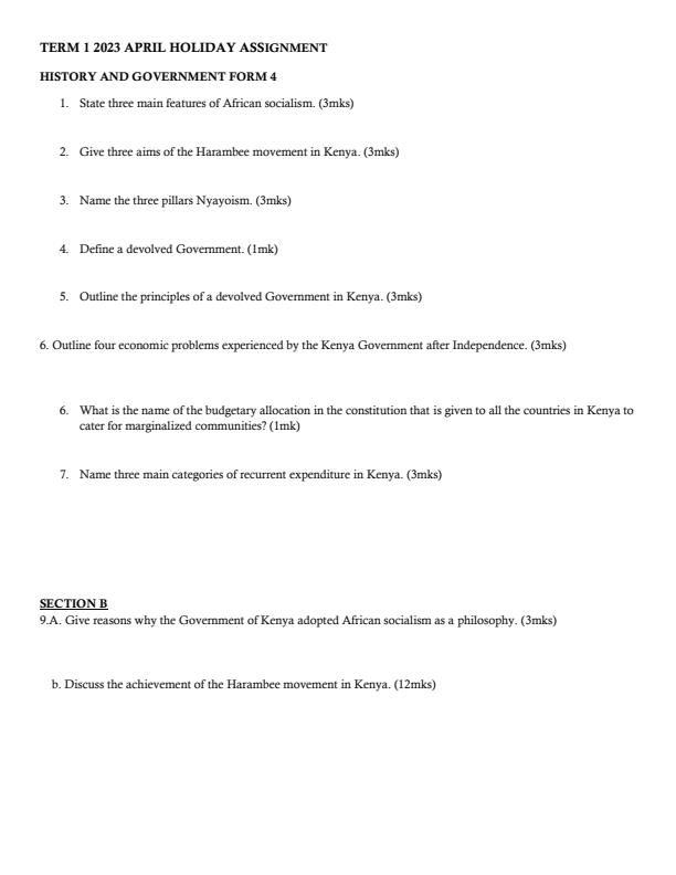 • Page 1 – Form 4 History and Government April Holiday Assignment 2023 – Kenyaplex