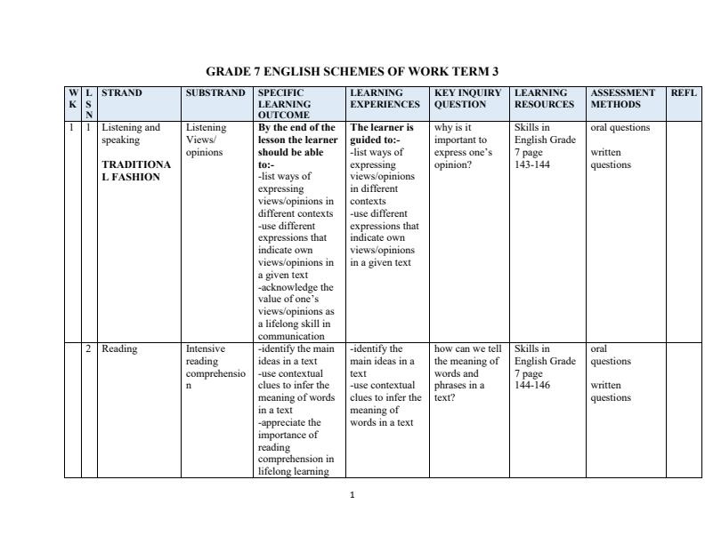 • Page 3 – Grade 7 Rationalized English Schemes of Work Term 3 - Skills in English – Kenyaplex
