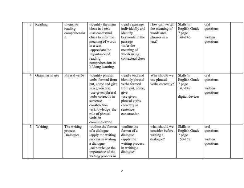 • Page 2 – Grade 7 Rationalized English Schemes of Work Term 3 - Skills in English – Kenyaplex