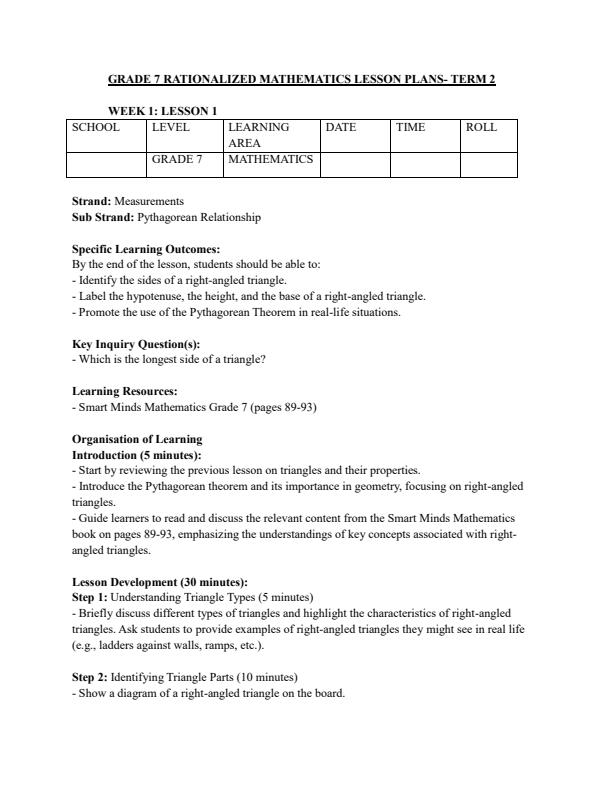 • Page 1 – Grade 7 Rationalized Mathematics Lesson Plans Term 2 – Kenyaplex