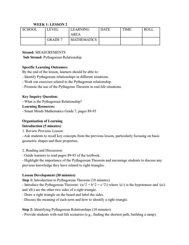 • Page 2 – Grade 7 Rationalized Mathematics Lesson Plans Term 2 – Kenyaplex