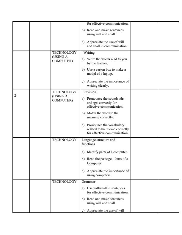 This Grade 3 Creative Activities Record of Work for Term 1 is designed specifically for teachers following the Kenyan primary school curriculum. It outlines a detailed plan for creative activities...