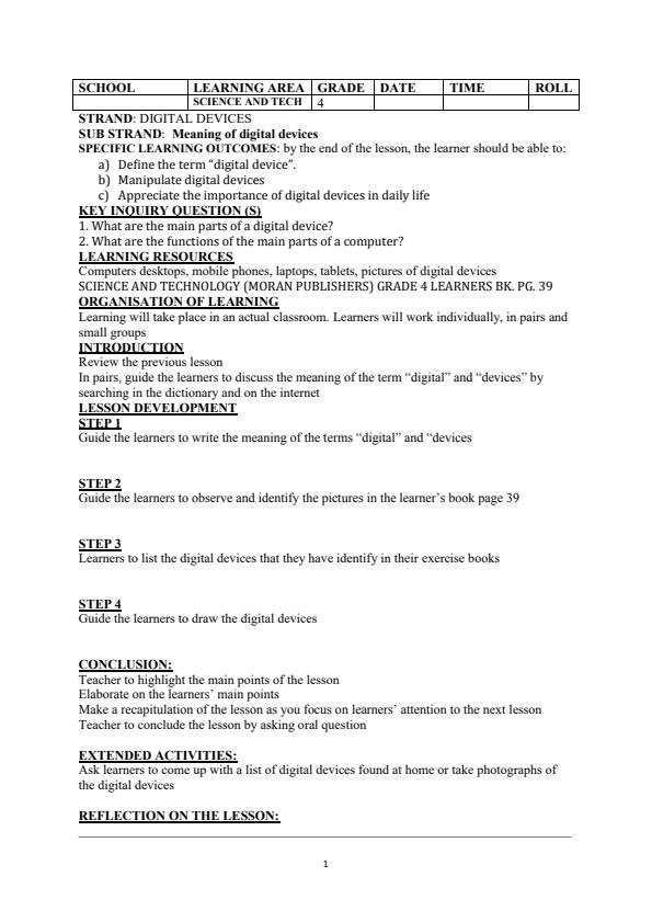 • Page 1 – Grade 4 Rationalized Science and Technology Lesson Plans Term 2 – Kenyaplex