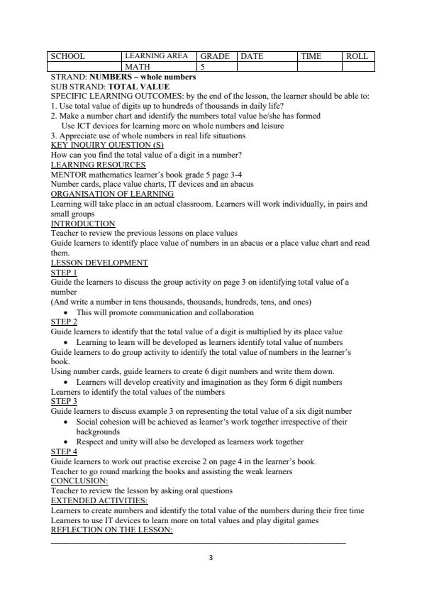 • Page 3 – Grade 5 Rationalized Mathematics Lesson Plans Term 1 – Kenyaplex