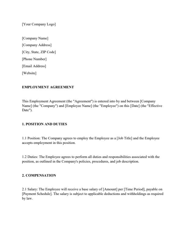 • Sample Full Time Employment Agreement Template
