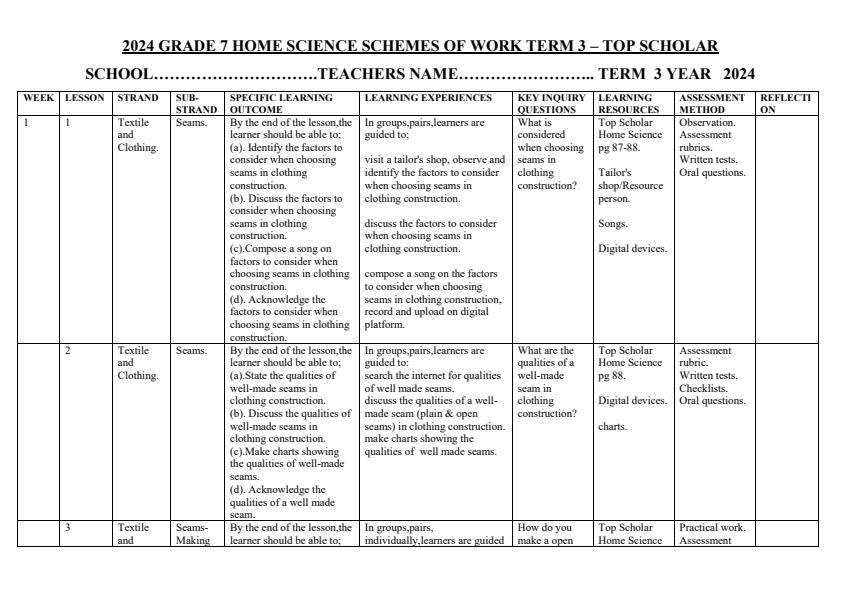 • Page 3 – Grade 7 Rationalized Agriculture and Nutrition Schemes of Work Term 3 - MTP – Kenyaplex