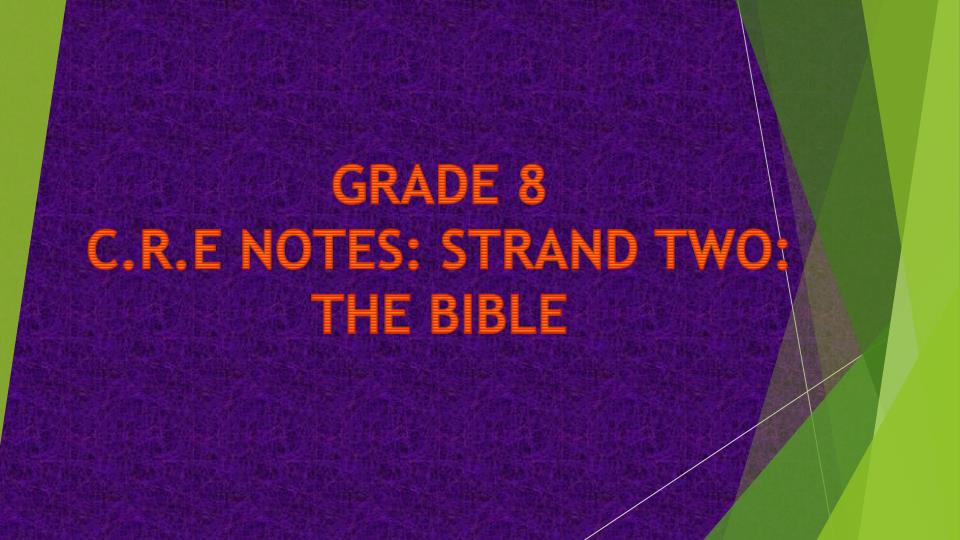 Download comprehensive detailed Grade 8 CRE strand one PowerPoint notes. the notes covers grade 8 strand one and its sub strands in detail.get your copy