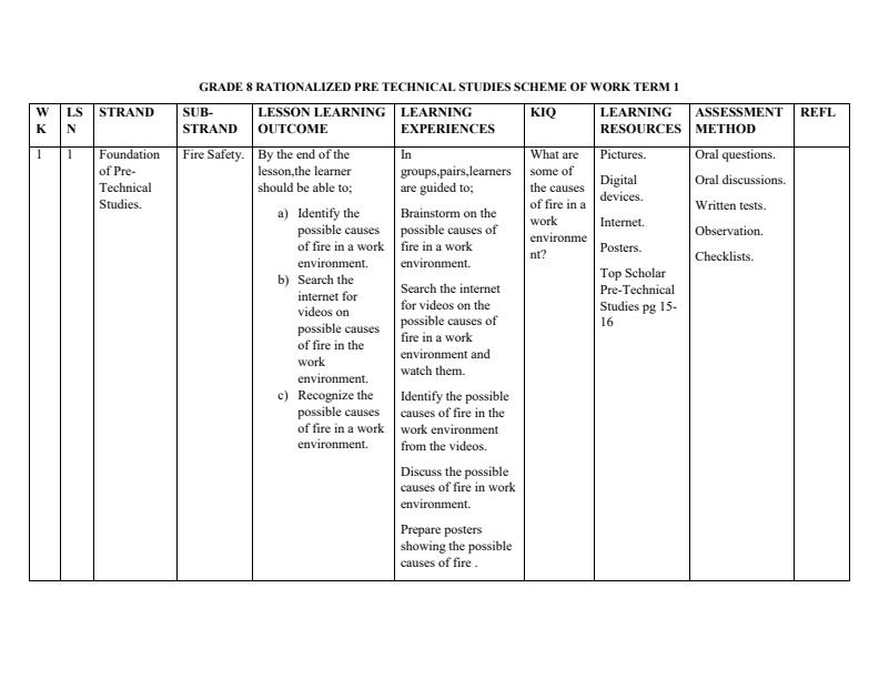 • Page 3 – Grade 8 Rationalized Pre Technical Studies Schemes of Work Term 1 - KLB Top Scholar – Kenyaplex