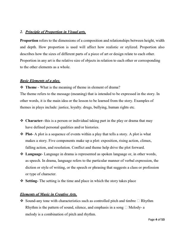 • Grade 8 Creative Arts and Sports Strand 1: Foundation of Creative Arts and Sports Notes