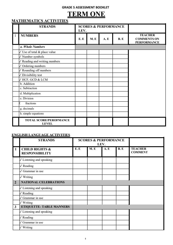 Discover Pre-Primary 1 Assessment books. Through this book, your work is made easy. All strands and sub strands are executed for teachers to tick the learners scores where necessary.