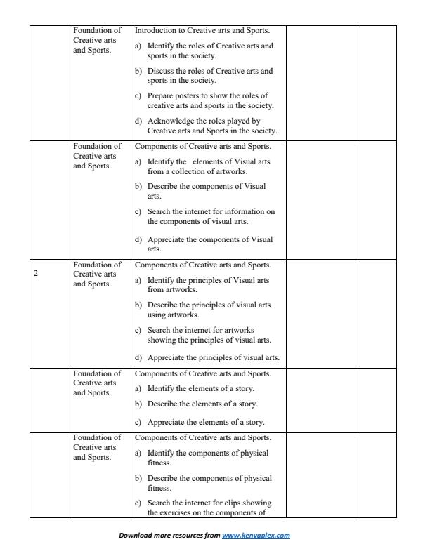 Grade 8 Creative Arts and Sports Notes Strand 1 Notes: Foundations of Creative Arts and Sports