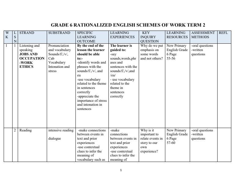 • Page 2 – Grade 6 Rationalized English Schemes of Work Term 2 - New Primary English – Kenyaplex
