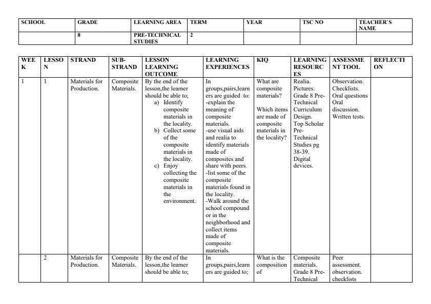 • Page 1 – Grade 8 Rationalized Pre-Technical Studies Schemes of Work Term 2 – Kenyaplex