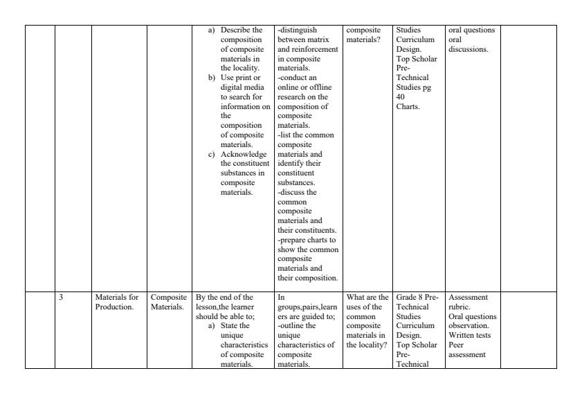 Grade 8 Rationalized Pre-Technical Studies Schemes of Work Term 2