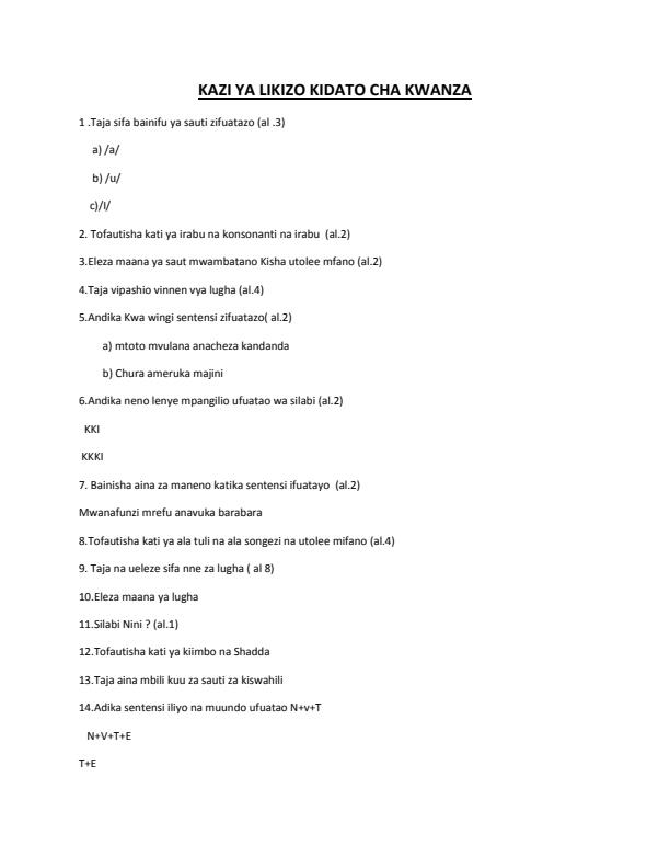 Download Form 1 Kiswahili December Holiday Assignment 2022