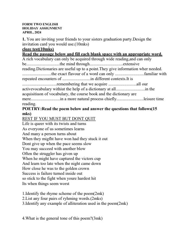 Get ready for the Form 2 English December 2024 Holiday Assignment focused on enhancing student skills. Perfect for students gearing up for a productive break.