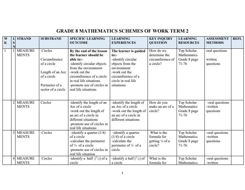 • Page 2 – Grade 8 Rationalized Mathematics Schemes of Work Term 2 - KLB Top Scholar – Kenyaplex