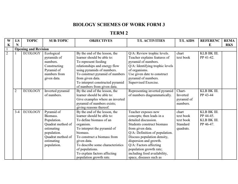 • Page 2 โ€“ Form 3 Biology Schemes of Work Term 2 โ€“ Kenyaplex