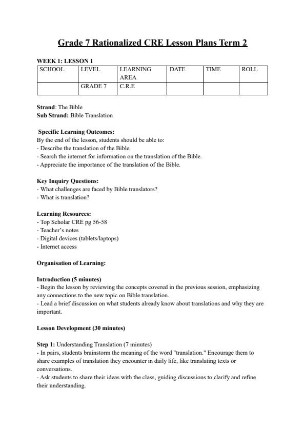 • Page 1 – Grade 7 Rationalized CRE Lesson Plans Term 2 - KLB Top Scholar – Kenyaplex