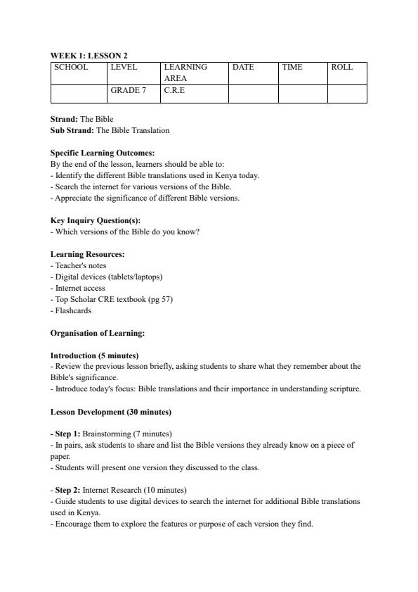 • Page 4 – Grade 7 Rationalized CRE Lesson Plans Term 2 - KLB Top Scholar – Kenyaplex