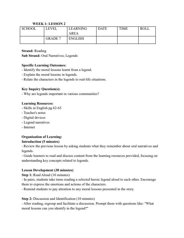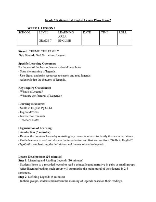 • Page 1 – Grade 7 Rationalized English Lesson Plans Term 2 – Kenyaplex
