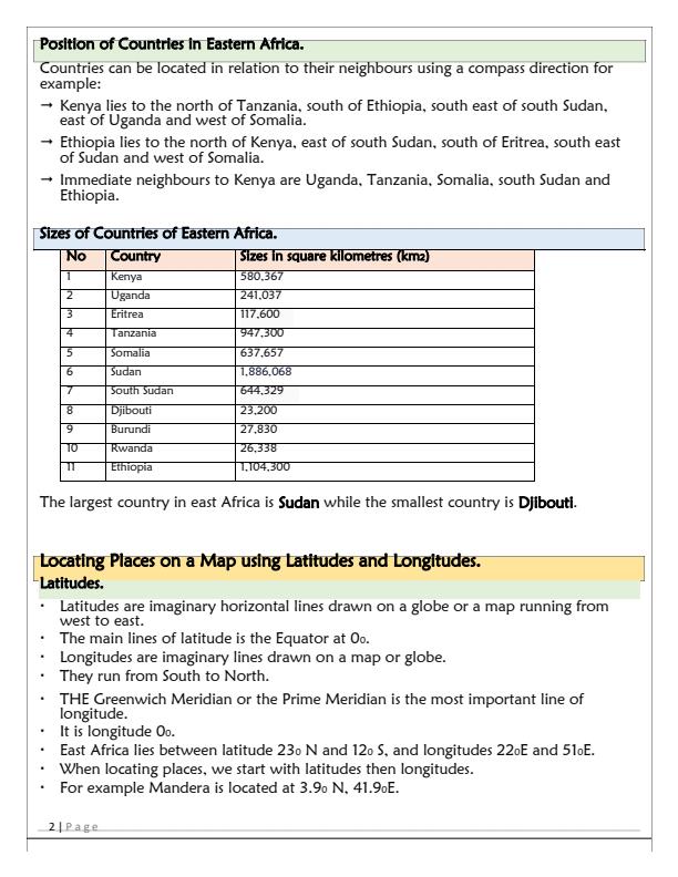 Position of Countries in Eastern Africa.