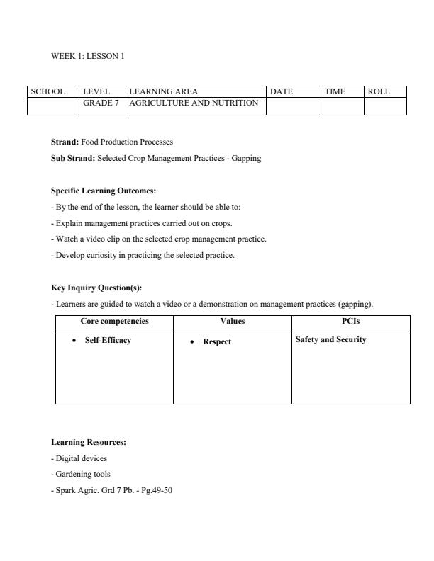 • Page 1 – Grade 7 Rationalised Agriculture and Nutrition Lesson Plans Term 2 – Kenyaplex