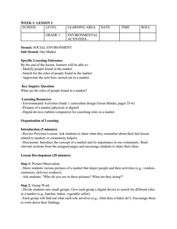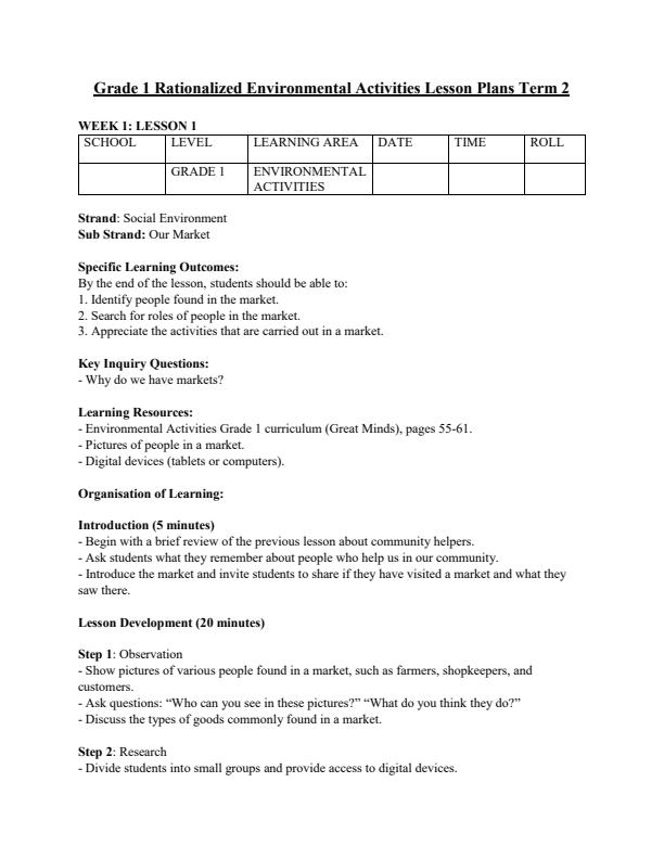 • Page 1 – Grade 1 Rationalised Environmental Activities Lesson Plans Term 2 – Kenyaplex