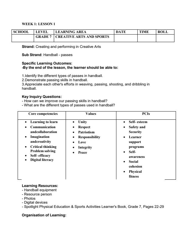 • Page 4 – Grade 7 Rationalised Creative Arts and Sports Lesson Plans Term 2 – Kenyaplex