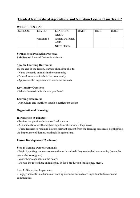 • Page 1 – Grade 4 Agriculture and Nutrition Lesson Plans Term 2 - Rationalized – Kenyaplex