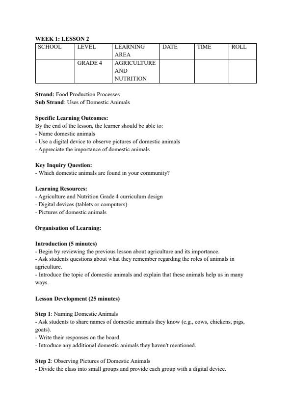 • Page 2 – Grade 4 Agriculture and Nutrition Lesson Plans Term 2 - Rationalized – Kenyaplex