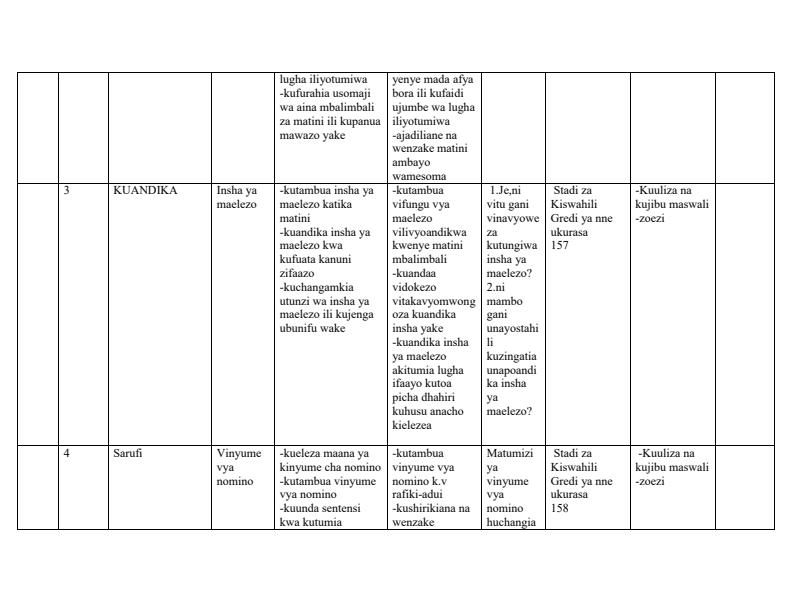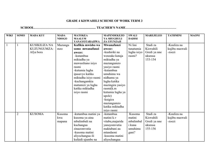 • Page 2 โ€“ Grade 4 Rationalised Kiswahili Schemes of of Work Term 3 - Stadi za Kiswahili (Moran) โ€“ Kenyaplex