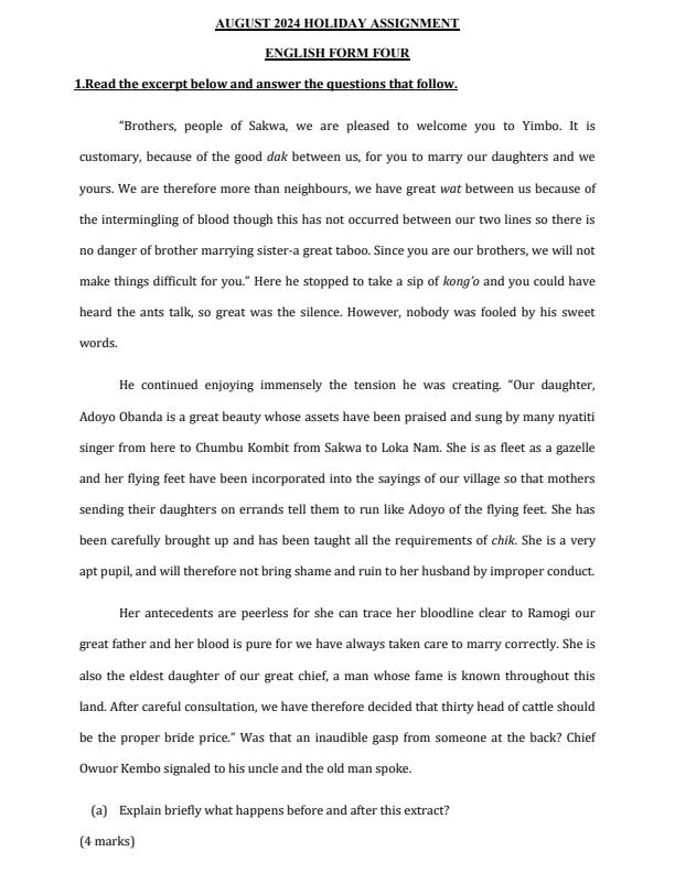 Form 4 English August 2024 Holiday Assignment