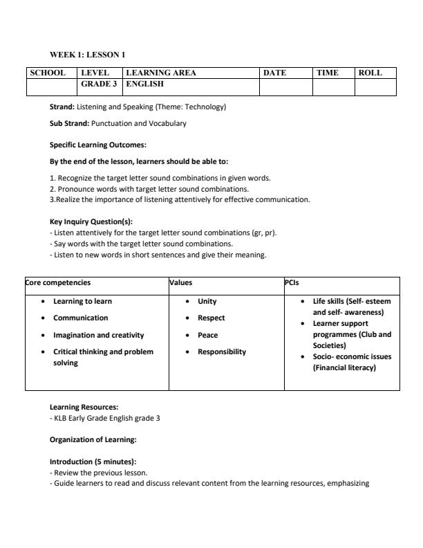• Page 3 – Grade 3 English Lesson Plans Term 3 – Kenyaplex