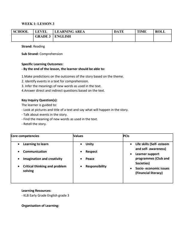 • Page 4 – Grade 3 English Lesson Plans Term 3 – Kenyaplex