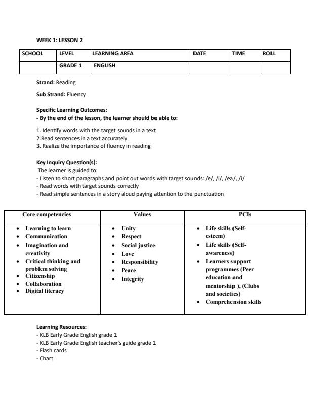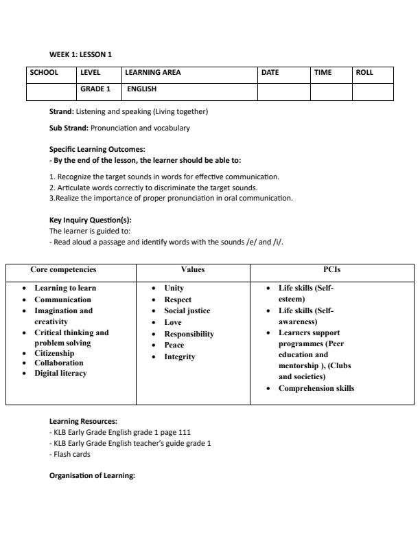 • Page 2 – Grade 1 Rationalized English Lesson Plans Term 3 – Kenyaplex