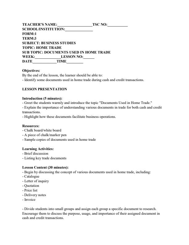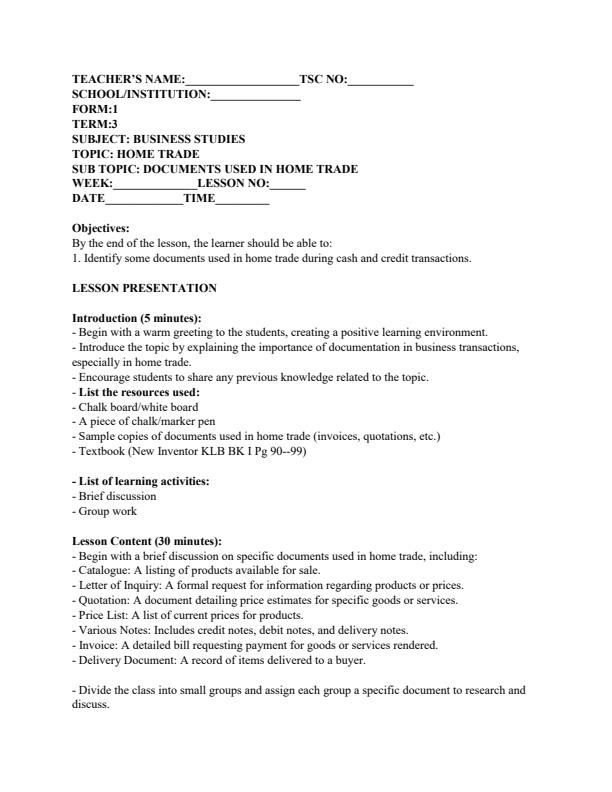 • Page 4 – Form 1 Business Studies Lesson Plans Term 3 – Kenyaplex