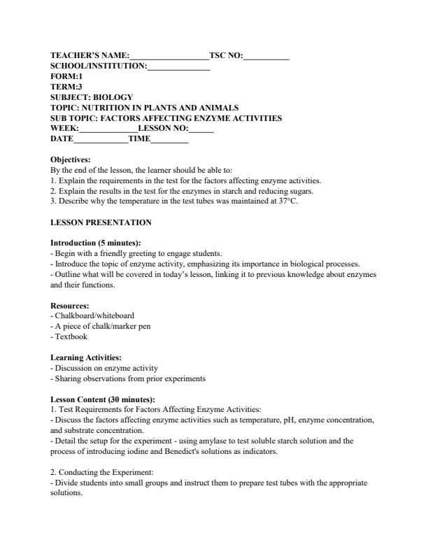 • Page 2 – Form 1 Biology Lesson Plans Term 3 – Kenyaplex