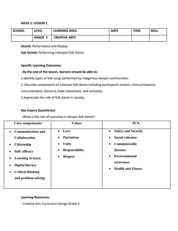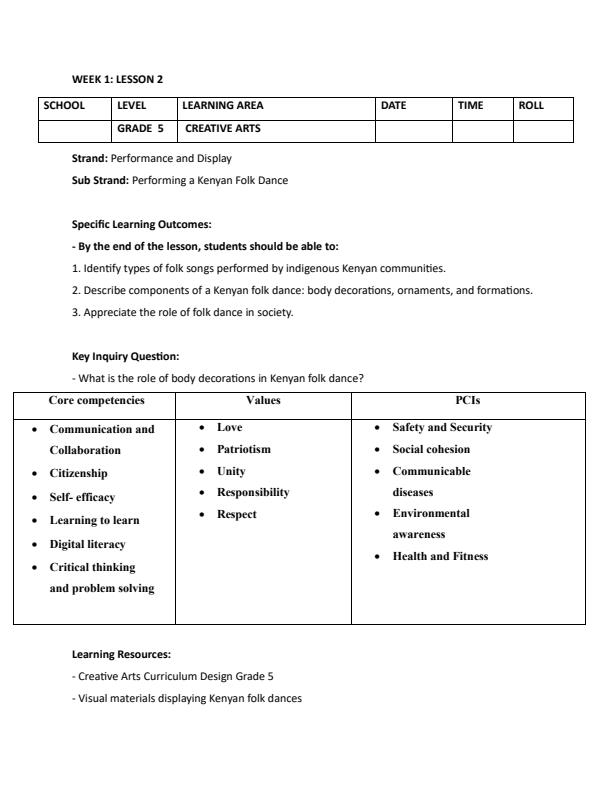 • Page 2 – Grade 5 Creative Arts and Sports Lesson Plans Term 3 – Kenyaplex