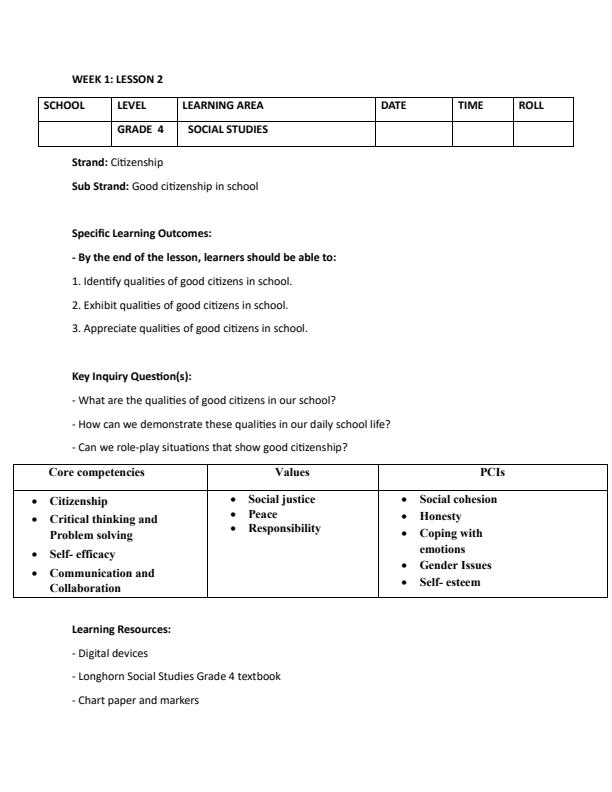 • Page 1 – Grade 4 Rationalized Social Studies Lesson Plans Term 3 – Kenyaplex