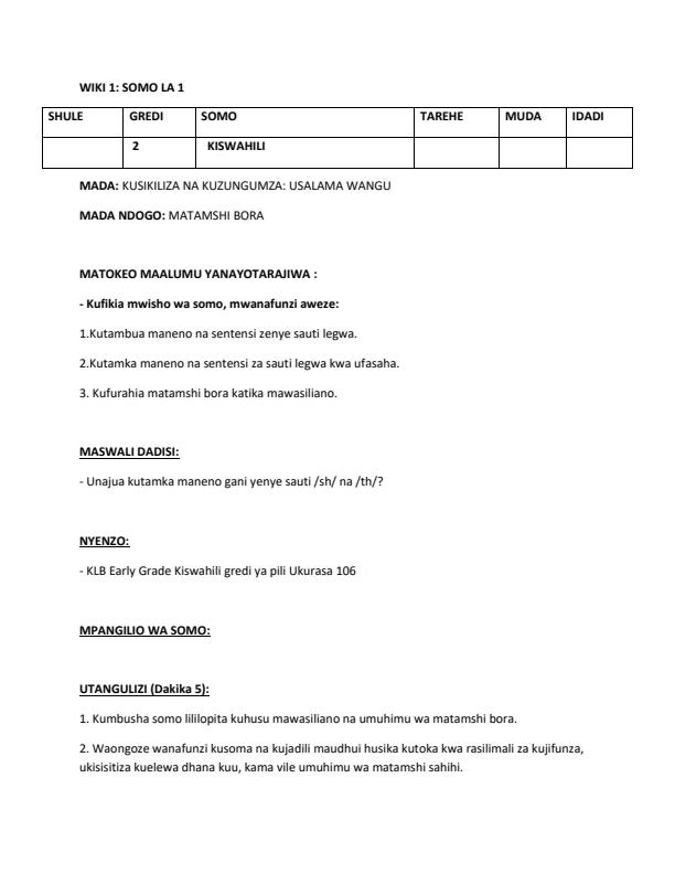 • Page 5 – Grade 2 Kiswahili Lesson Plans Term 3 – Kenyaplex