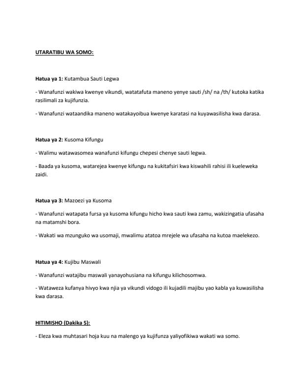 • Grade 2 Kiswahili Lesson Plans Term 3